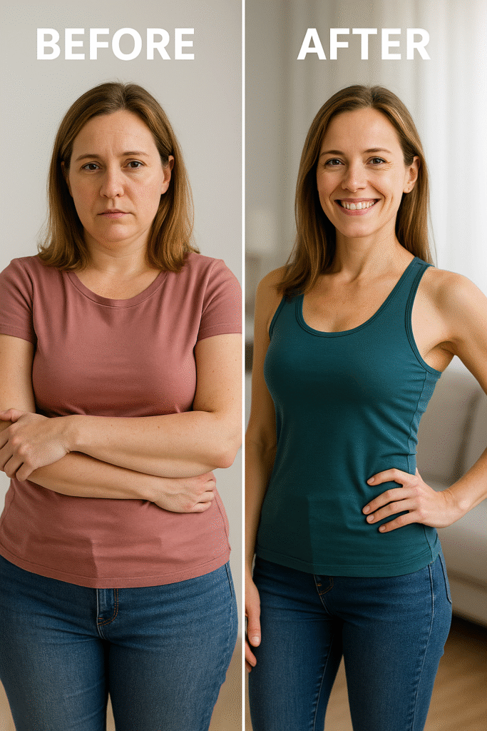 Over the next weeks, I started losing inches — especially in the belly area — and even my clothes began to fit differently. I didn’t feel anxious, or deprived. I felt in control again.